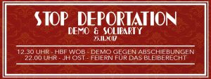 Für kommenden Samstag rufen die Falken und andere Organisationen zu einer Demo unter dem Motto „Stop deportation – Solidarität mit Geflüchteten. Abschiebungen verhindern!“ auf. Anlass ist die Abschiebeandrohung für rund 30 Geflüchtete aus Wolfsburg, die nach Afghanistan abgeschoben werden sollen. Infos zur Situation in Afghanistan gibt es unter anderem hier: www.proasyl.de.
