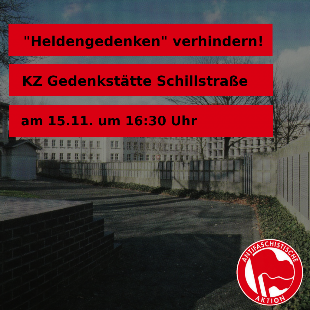 Wir rufen dazu auf, sich am 15.11. den Nazis entschlossen in den Weg zu stellen und das geplante Parteiübergreifende „Heldengedenken“ der Jugendorganisation der „NPD“ und der Kleinstpartei „Die Rechte“ am Schilldenkmal zu verhindern.