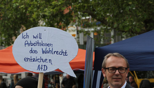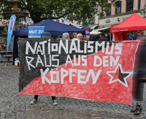 Protest gegen AfD-Stand: Nationalismus ist keine Alternative
