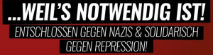 In einem Grußwort damals sagten die beiden Antifaschisten hierzu „Auch wir werden diesen Prozess politisch führen und im Kampf gegen die Repression, wie die Beschuldigten vor uns in der Sache, konsequent die Aussage verweigern. Wir werden keine anderen Genoss*innen belasten, wir werden nichts gestehen, keine Reue bekunden oder Eingeständnisse von uns geben. Aber vor allem werden wir uns sicher nicht, von den uns vorgeworfenen angeblichen Taten distanzieren!“ Continue reading Kampf der Repression! – Aufruf zur Prozessbegleitung am 05.10.2022→