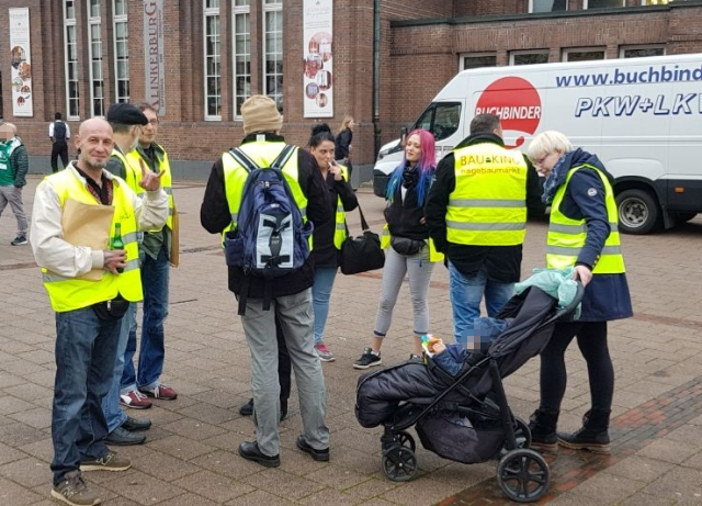 Auch in Oldenburg blieben die ersten Aktionen der „Gelbwesten“ hinter den eigenen Erwartungen zurück. Am Samstag, 01.Dezember 2018 traf sich etwa eine Gruppe von lediglich 17 Aktivist*innen um 13:00 Uhr an der Südseite des Oldenburger Hauptbahnhofs. Es wurden keinerlei Blockadeversuche unternommen, man ging nur durch die Innenstadt, um Flugblätter, in denen die „Gelbwesten“ vorgestellt wurden, zu verteilen. Außerdem wurden Flugblätter gegen den UN-Migrationspakt verteilt.