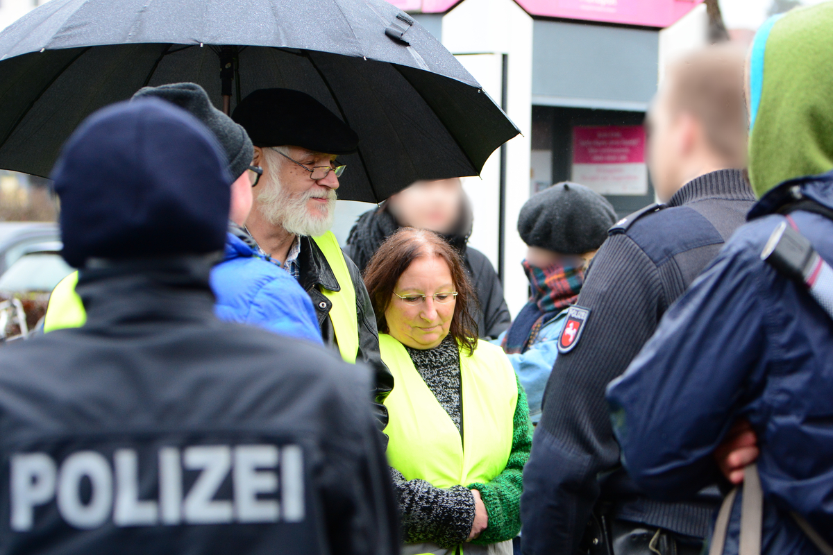 Bei der letzten öffentlichen Aktionen sahen sich lediglich vier „Gelbwesten“ etwa 30 kurzfristig mobilisierten Antifaschist*innen gegenüber.