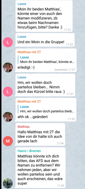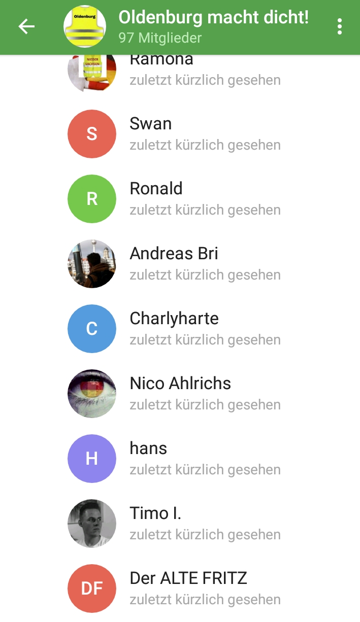 Die Gruppe kommuniziert und organisiert sich über den Messenger-Dienst „Telegram“. In der Oldenburger Gruppe befinden sich derzeit etwa 90 Menschen, davon schreibt jedoch nur ein kleiner Teil aktiv. In dieser Gruppe findet sich auch Nico Ahlrichs aus Wittmund (Landkreis Friesland) wieder. Ahlrichs war Mitglied der neonazistischen Kameradschaft „AG Wiking“ und trat bei der niedersächischen Landtagswahl 2008 für die NPD an.