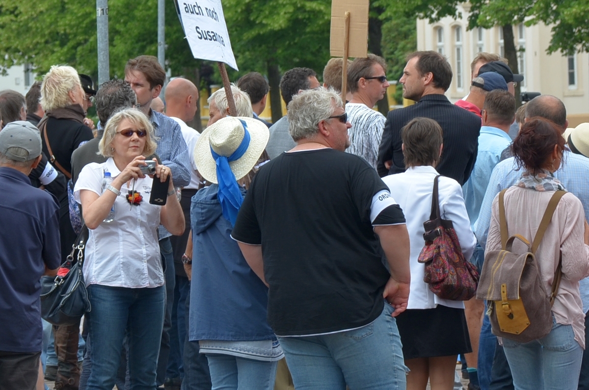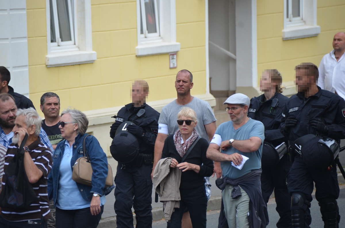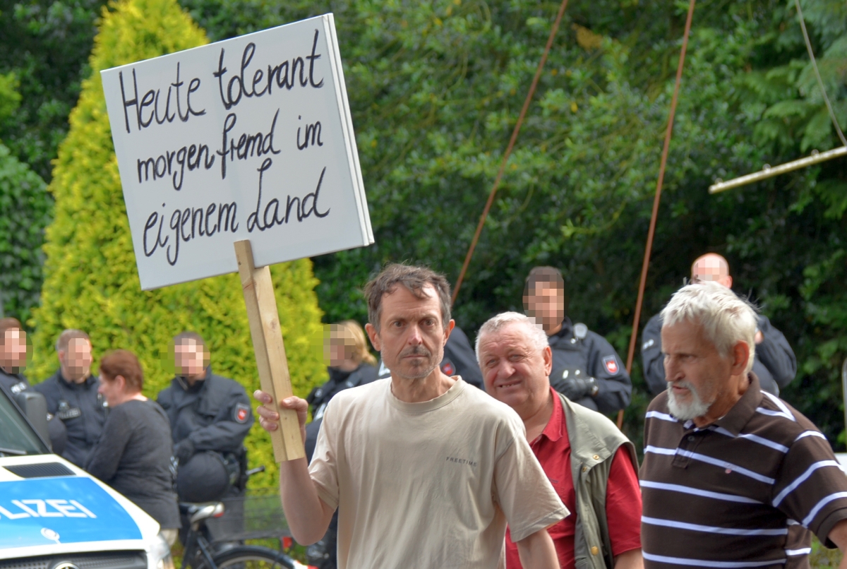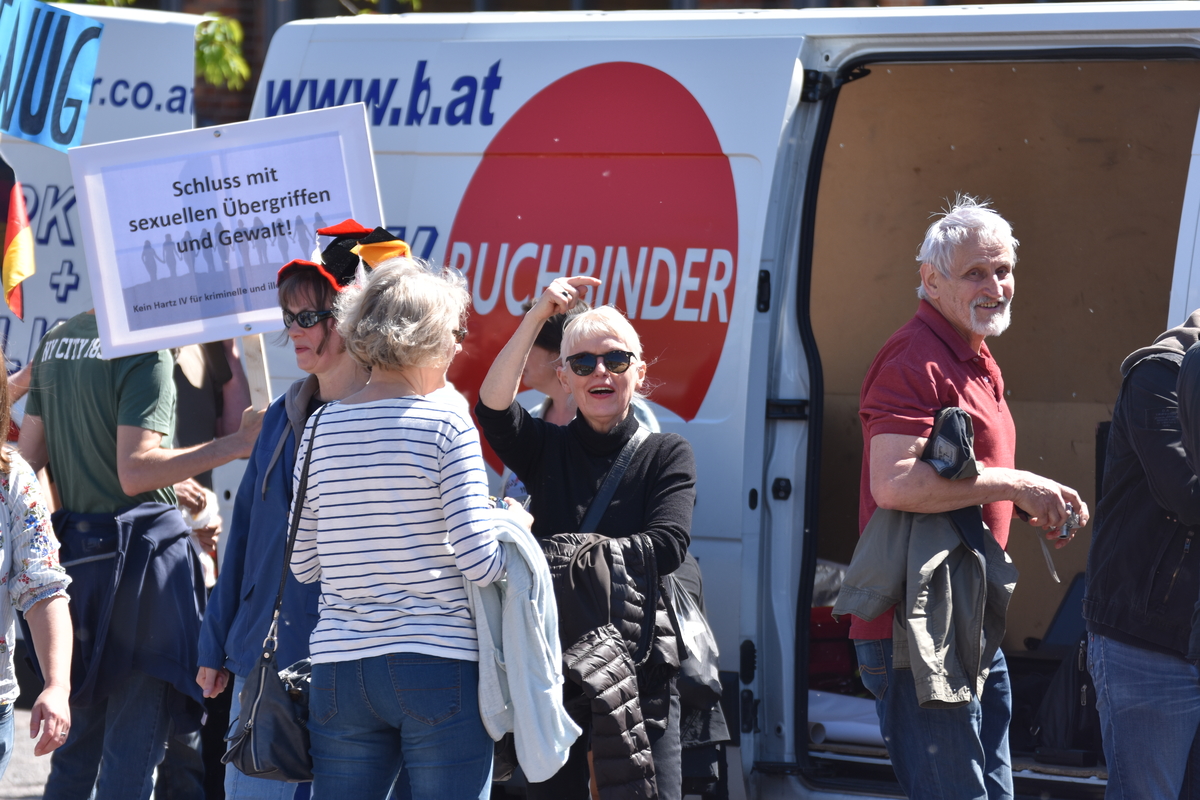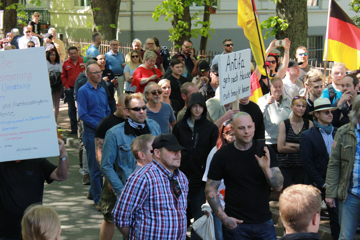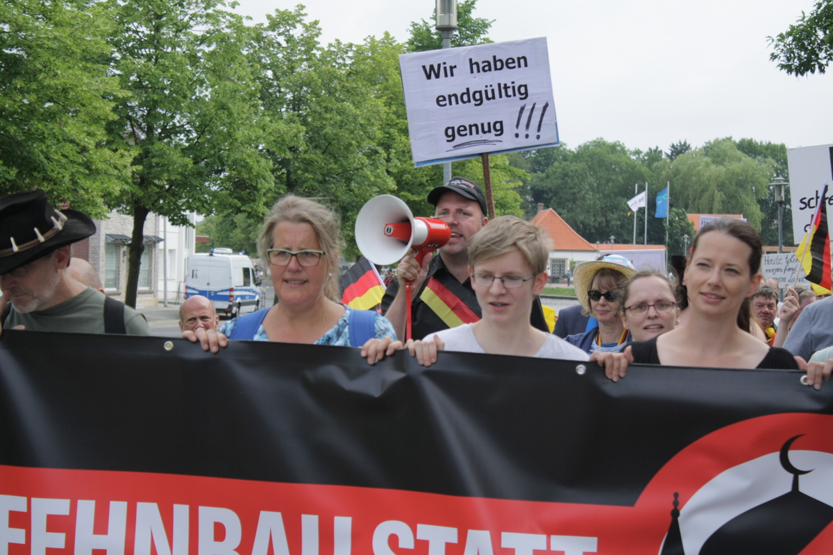 Zu einer ersten Aktion suchte man sich Delmenhorst aus. Etwa 100 Personen nahmen am 5.Mai 2018 an der Demonstration teil, darunter ein Großteil aus Strukturen der AfD und ihrer Jugendorganisation „Junge Alternative“ (JA). Sämtliche Redner*innen, unter ihnen die prominente Aktivistin Leyla Bilge, kamen von der Partei. Auffällig: Es waren viele AfD-Vertreter*innen mit Bezügen in das völkisch-neofaschistische Milieu vor Ort: JA-Chef Lars Steinke und der Oldenburger Rechtsanwalt Gerhard Vierfuß mit ihren Kontakten zur „Identitären Bewegung“, Andreas Iloff aus dem Landkreis Diepholz, der in der Neonaziszene seit vielen Jahren bestens vernetzt ist und auch schon neonazistische Veranstaltungen auf seinem Grundstück organisierte oder der Bremer Alexander Tassis, der unter anderem Schriftführer in der vom Verfassungsschutz beobachteten „Patriotischen Plattform“ (PP) ist.