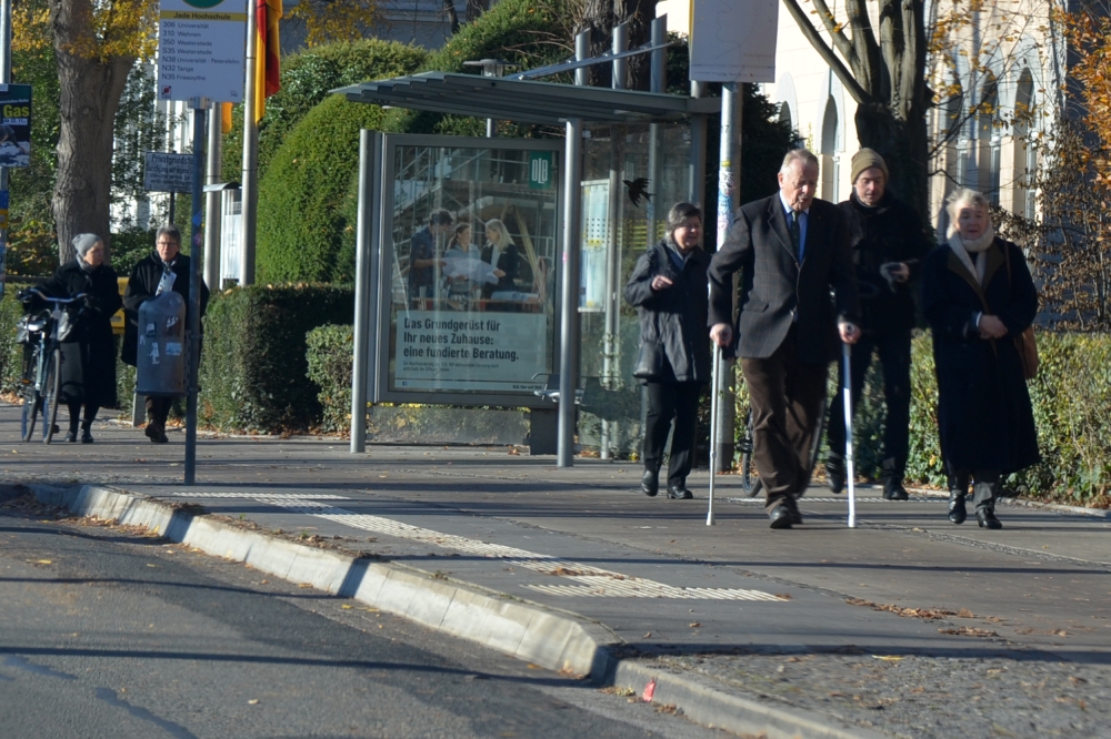 Gemeinsame Teilnahme am „Volkstrauertag“ 2018: Ganz rechts: Imke Barnstedt, daneben Gerhard Vierfuß. Mit Gehhilfe: Thomas Hoyer. Ganz links im Bild: mit Fahrrad eine AfD-Aktivistin, die ebenfalls beim „Oldenburger Kreis“ und bei einer „OLGIDA“-Kundgebung vor Ort war.
