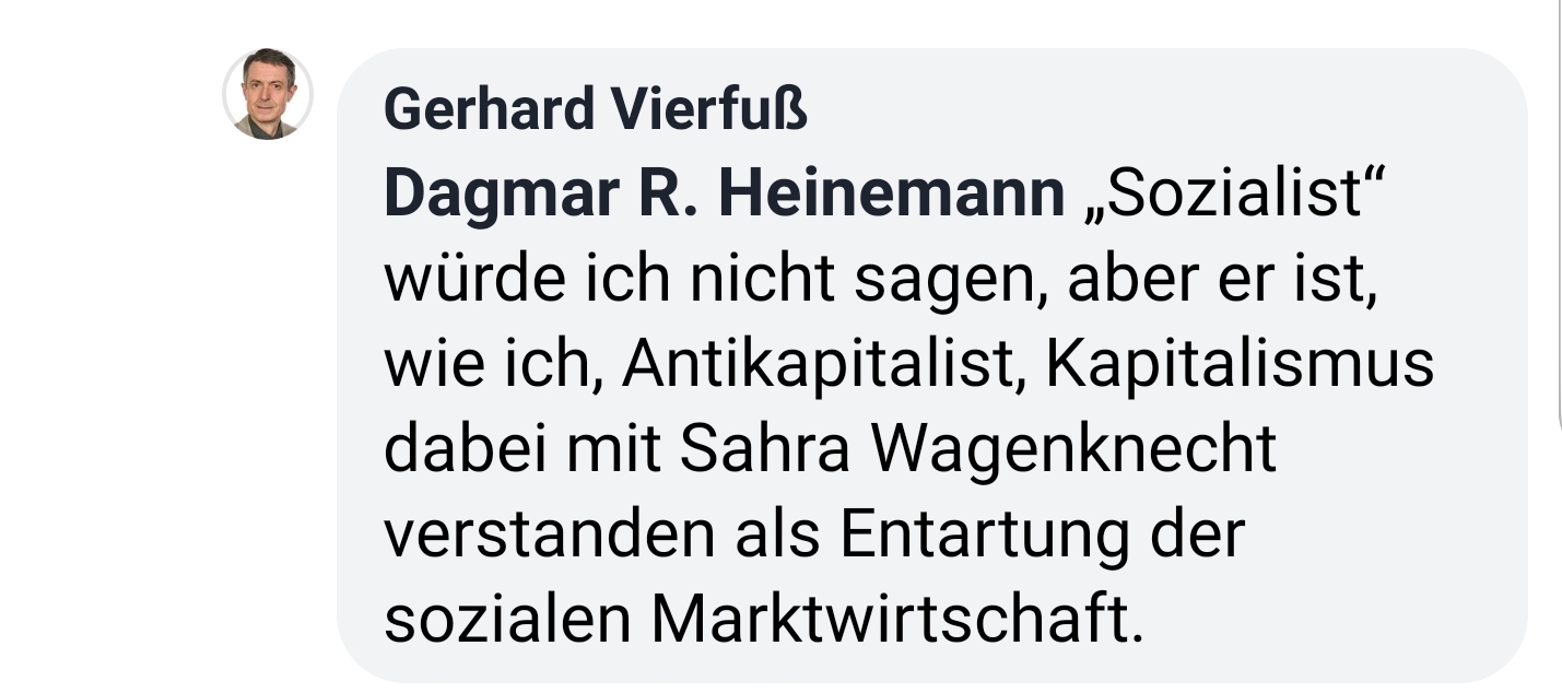 Ganz in diesem Sinne enthält auch Vierfuß‘ Sprache NS-Bezüge, etwa wenn er in sozialen Netzwerken von einer „Entartung der sozialen Marktwirtschaft“ oder von der grenzenlosen „Verlogenheit unserer Systempolitiker“ schreibt.