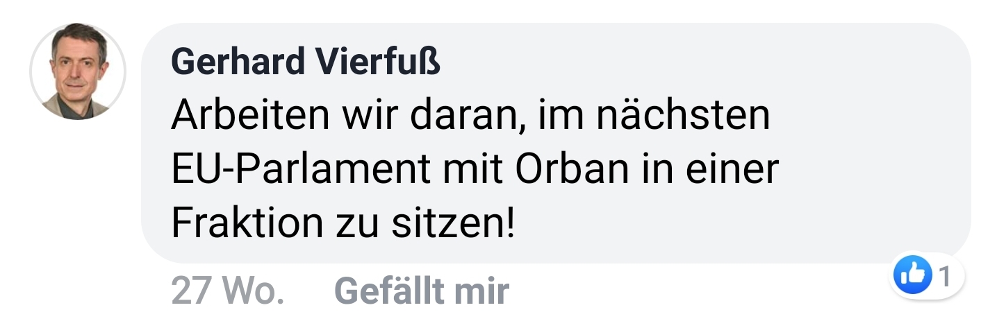 In diesem Artikel könnten wir unzählige weitere Belege dafür anführen, warum wir Gerhard Vierfuß als völkischen Hardliner einschätzen. Zu nennen wären etwa die Bürogemeinschaft mit dem „alten Burschenschafter“ und Rechtsanwalt Volker F. Felmy, die bis zu dessen Ruhestand Bestand hatte, die Kontakte zum „alten Burschenschafter“ und Parteifreund Thomas Hoyer, die Lobeshymnen auf den ungarischen Regierungspräsidenten Viktor Orban, den Versuch in Oldenburg einen Ableger der „Gelbwestenproteste“ zu etablieren und vieles mehr.