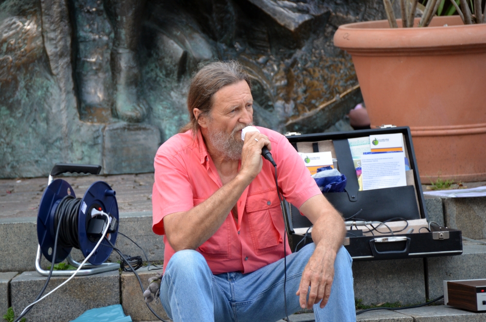 Werner Altnickel spricht auf einer „Friedensmahnwache“ in Oldenburg