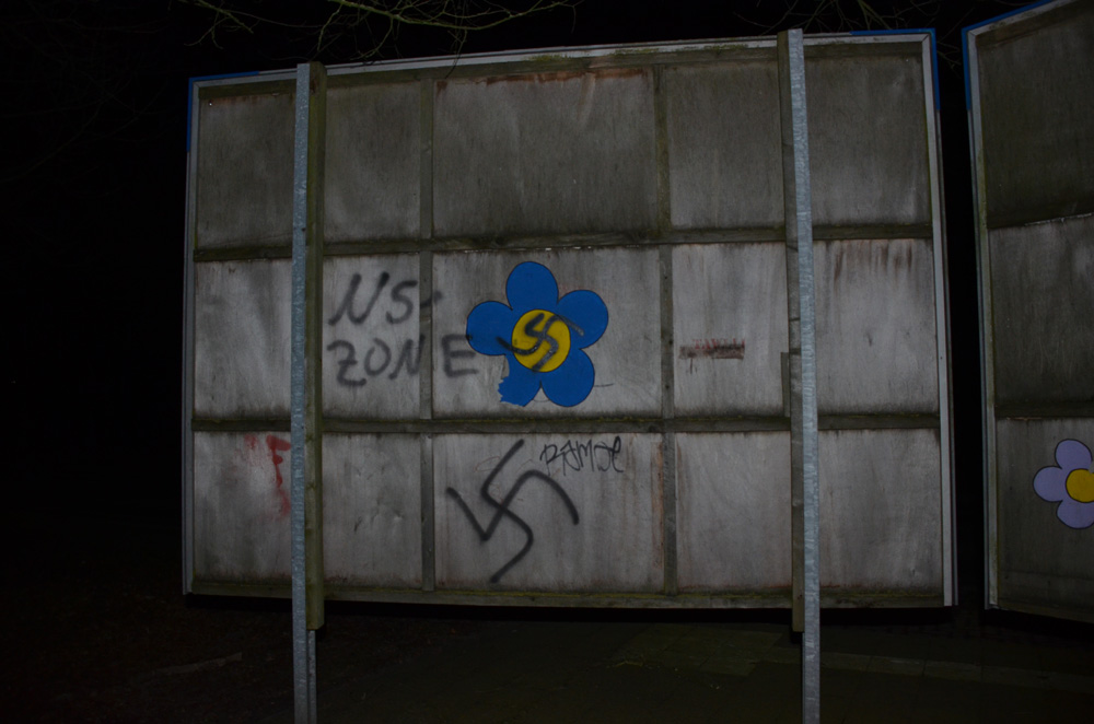 In einer spontanen Aktion wurden die gesprühten Hakenkreuze am jüdischen Friedhof verdeckt.