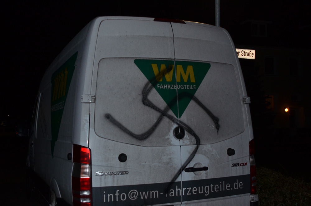 Parole mit dem gleichen Wortlaut direkt vor dem Wohnhaus des Oldenburger Neonazis Daniel Gawenda