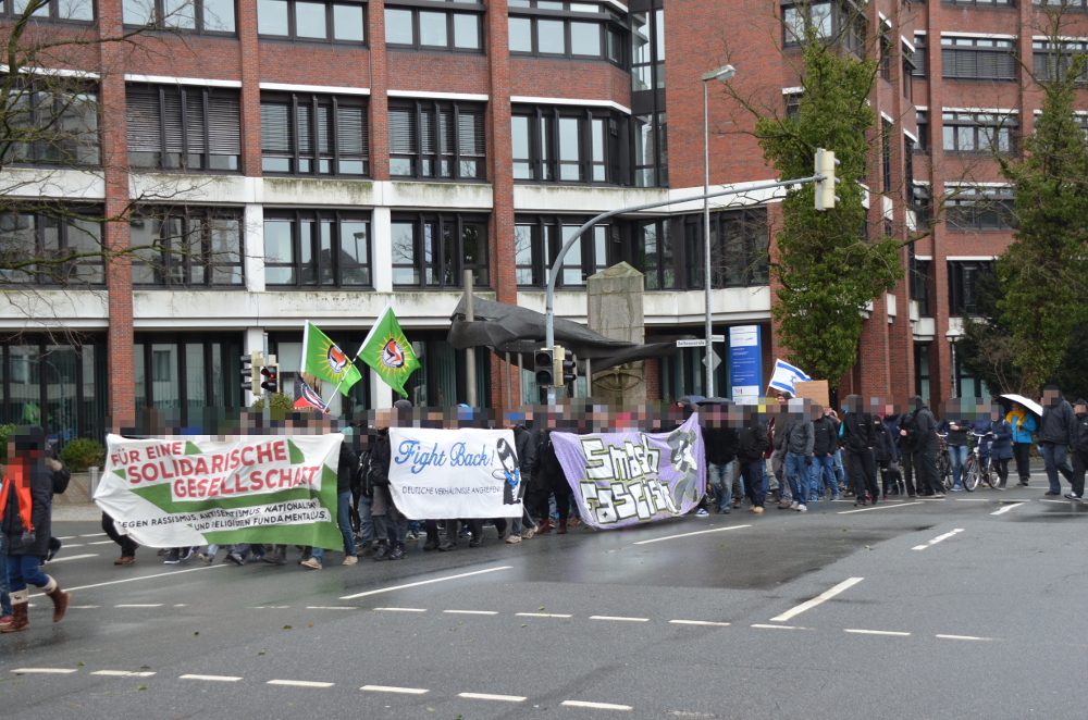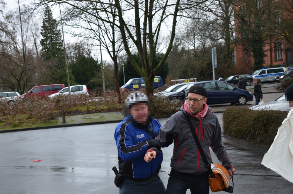 Aggressiv verhielt sich Christoph G. G. fiel in der Vergangenheit immer wieder durch israelfeindliche Stimmungsmache auf. Er stellte sich provozierend vor den Antifablock, bis ihn die Polizei weg zog.