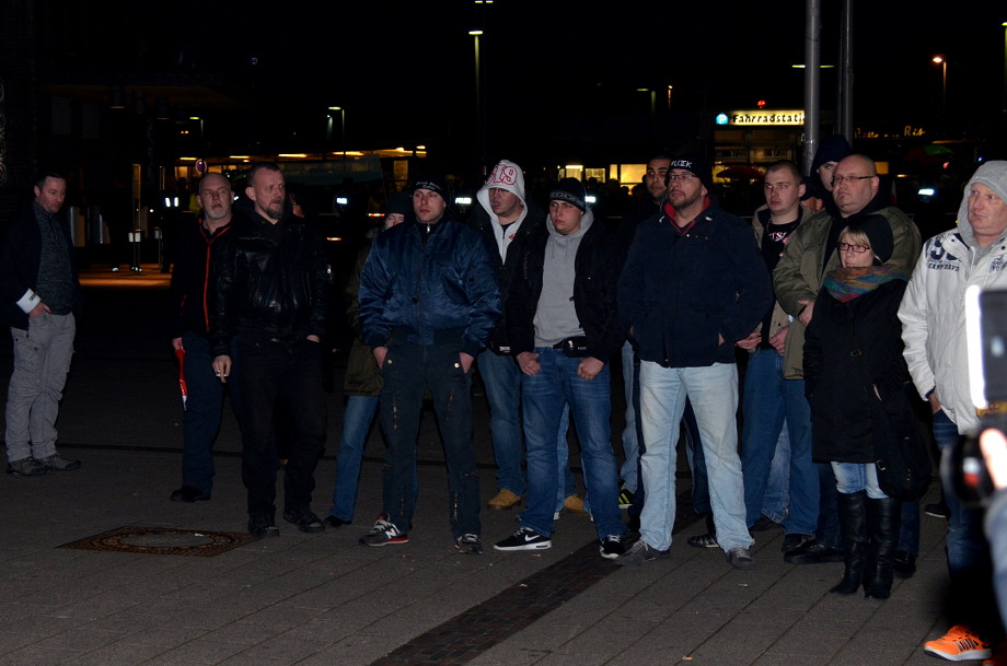 „Fight Squad Portcity“, „Querschläger Vechta“, „Kategorie C“, „Blood Brother Nation“, „Skull Heads Germany“, „German Defense League“, „Infidels Deutschland“, „Identitäre Bewegung“ sowie mindestens drei ehemalige Funktionäre der „Alternative für Deutschland“ – Wer hier lediglich von „besorgten Bürger_innen“ spricht, verklärt die gefährliche Mixtur aus Rassist_innen, Rockern, Hooligans und Populist_innen.