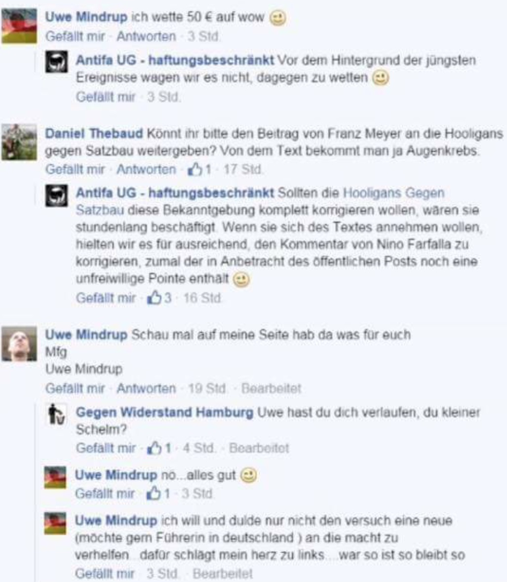 Uwe Mindrup weist die Facebook Seite „Antifa UG – haftungsbeschränkt“ auf die Chatprotokolle von WOW hin