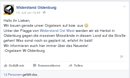 So kam dann auch die Facebook-Seite „Widerstand Oldenburg“ recht schnell zum Erliegen. Zu einem angekündigten Marsch durch Oldenburg im Herbst wird es aller Voraussicht nach so schnell nicht kommen.