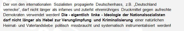Eben dieses Organisationsteam verfasste einen Forderungskatalog, der wirre und unzusammenhängende Ideologiefragmente offenbart. Unter anderem wird die Weltanschauung der NationalsozialistInnen als „eigentlich links“ bezeichnet.