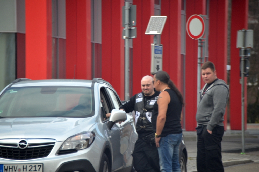 Etwas abseits der Kundgebung beobachteten Aktivisten der „Bürgerwehr Wilhelmshaven“ das Geschehen, unter ihnen das Mitglied des lokalen Motorradclubs „Schwarzes Rudel Wilhelmshaven“, der Neonazi Jens Malte Hillers. Im Zuge einer Spaltung distanzierte sich Hillers von Bliesener und Wagenlöhner und ist nun im „Patriotischen Widerstand Deutschland“ (PWD) aktiv, zusammen mit dem Chef seines Motorradclubs, Volker Hillnhütter.