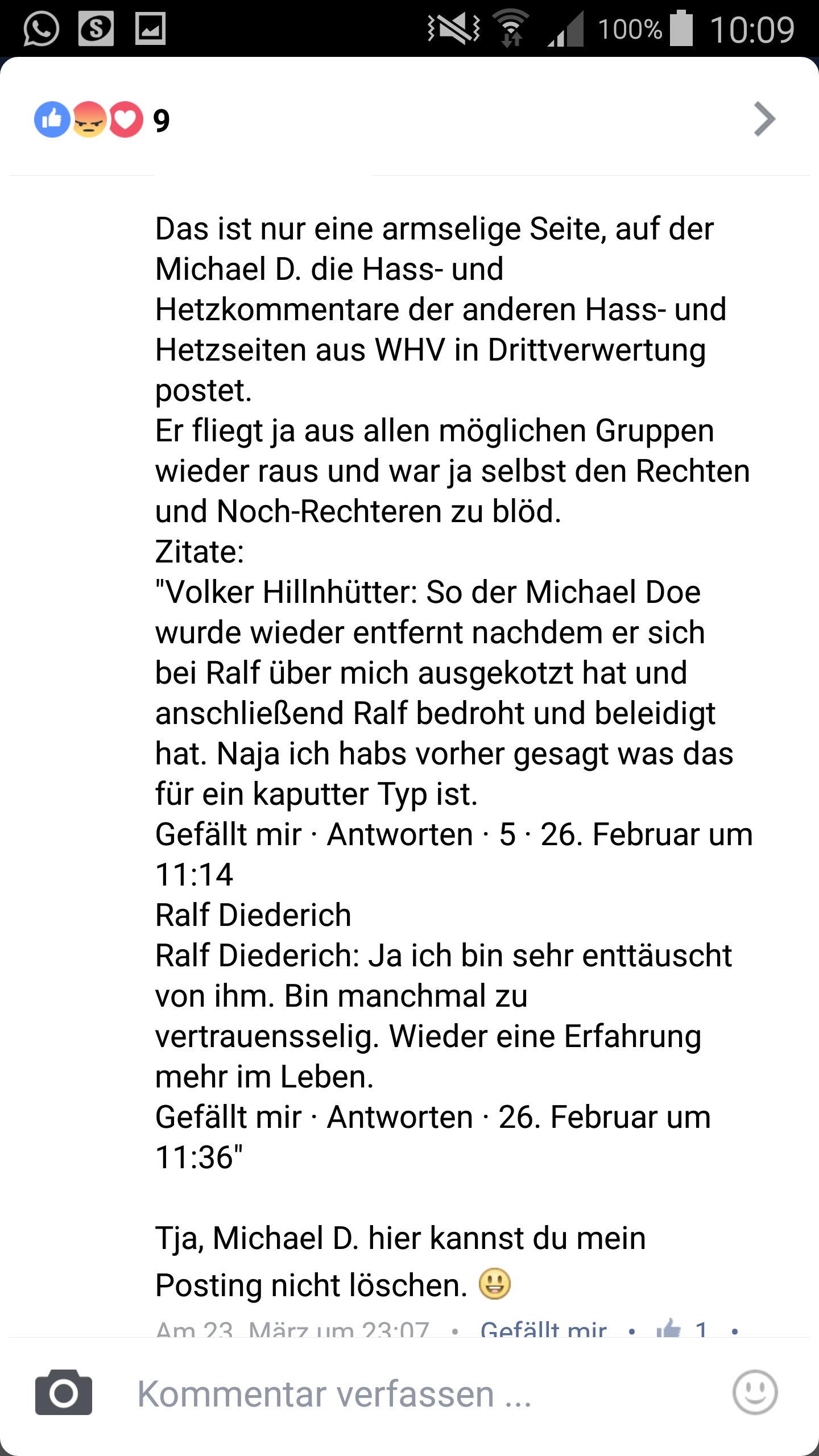 Als Beobachter trat außerdem der Kopf der Wilhelmshavener„Bürgerwehr“, Ralf Diederich auf. Auch mit der „Bürgerwehr Wilhelmshaven“ gerieten die Organisator*innen der „deutschen Revolution“ im Vorfeld in Streit.