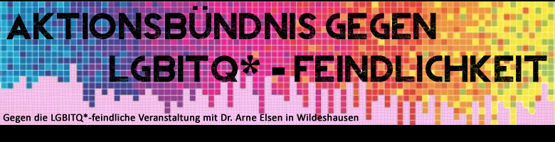Am 19.07. soll in Wildeshausen ein sogenannter „Heilungsgottesdienst“ und „Heilungsseminare“ in der vom Landkreis finanzierten Musikschule stattfinden. Hier soll dann unter anderem Homosexualität „geheilt“ werden können. Die Freien Christen Wildeshausen haben hierzu den Hamburger Diabetologen Dr. Arne Elsen eingeladen. Dieser gibt vor, Homosexuelle heilen zu können, als wenn dies eine Art Krankheit wäre.