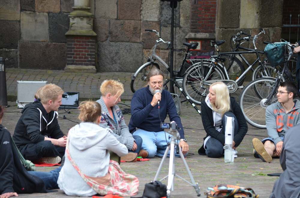 Wir wollen an dieser Stelle den Link „beuteltiger_inherzrasen“ empfehlen. Hier werden Texte gesammelt, die sich kritisch mit den Oldenburger „Friedensmahnwachen“ auseinandersetzen. Diese Mahnwachen sind eine Plattform für antisemitische Verschwörungstheorien. Unter anderem ist dort seit zwei Wochen der Oldenburger Verschwörungsideologe Werner Altnickel zu Gast, um z.B. davon zu erzählen, dass Deutschland noch immer von den USA besetzt sei. Darüber hinaus vergleicht er Massentierhaltungsanlagen mit nationalsozialistischen Konzentrationslagern und relativiert damit die Shoah. Auch berichtet er unter dem Applaus der Teilnehmer_innen, dass das Deutsche Reich immer noch bestehen würde. Nicht umsonst bekleidete Werner Altnickel für eine Zeit das Amt des „Reichsumweltministers“ in einer sogenannten „Exilregierung“.