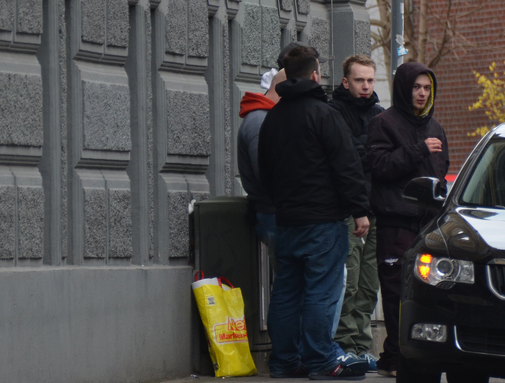 Oldenburger Neonazis auf misslungenem Abfangkurs: Rechts im Bild: Daniel Gawenda (mit Kapuze) und Phillip Krull