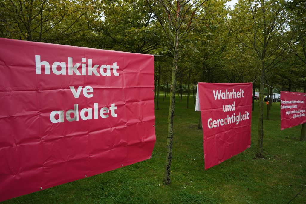 Das “Fest der Vielen” fand unter dem Motto “Antirassistische Kämpfe verbinden” statt. Es wurde genutzt um zusammenzukommen und gemeinsam an den 37. Jahrestag des rassistischen Brandanschlags vom 26.08.1984 in Duisburg-Wanheimerort zu gedenken und erinnern. Sieben Duisburger:innen wurden hier ermordet. Döndü Satır – 40 Jahre, Zeliha Turhan – 18 Jahre, Rasim Turhan – 18 Jahre, Songül Satır – 4 Jahre, Ümit Satır – 5 Jahre, Çiğdem Satır – 7 Jahre, Tarık Turhan – 50 Tage. Schon zwei Tage vor dem Fest, am 26. August 2021, fand ein stilles Gedenken vor dem Haus der Angehörigen statt.