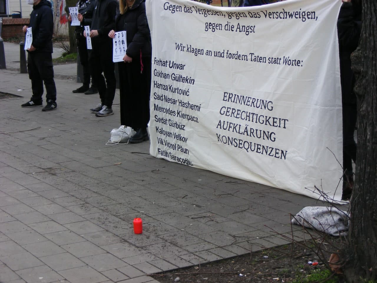 “Ihre Namen sollen erinnern und mahnen, den rassistischen Normalzustand im Alltag, in den Behörden, den Sicherheitsapparaten und überall zu beenden. Der rassistische Anschlag war auch ein Ergebnis der rechten Hetze von Politiker:innen, Parteien und Medien. Behörden und Sicherheitsapparate haben ihn durch ihre strukturelle Inkompetenz und Ignoranz weder verhindert noch aufgeklärt.