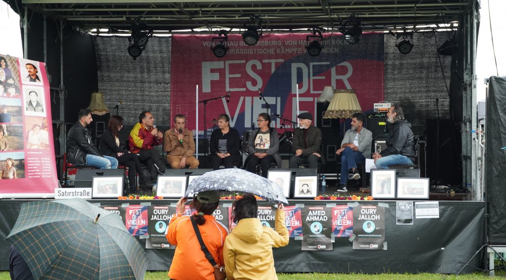 Das “Fest der Vielen” fand unter dem Motto “Antirassistische Kämpfe verbinden” statt. Es wurde genutzt um zusammenzukommen und gemeinsam an den 37. Jahrestag des rassistischen Brandanschlags vom 26.08.1984 in Duisburg-Wanheimerort zu gedenken und erinnern. Sieben Duisburger:innen wurden hier ermordet. Döndü Satır – 40 Jahre, Zeliha Turhan – 18 Jahre, Rasim Turhan – 18 Jahre, Songül Satır – 4 Jahre, Ümit Satır – 5 Jahre, Çiğdem Satır – 7 Jahre, Tarık Turhan – 50 Tage. Schon zwei Tage vor dem Fest, am 26. August 2021, fand ein stilles Gedenken vor dem Haus der Angehörigen statt.