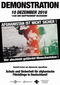 Am 10.12 veranstalten afghanische Refugees eine Demonstration in Hildesheim. Anlass ist die drohende Abschiebung von Afghan_innen in das vermeintlich „sichere Herkunftsland“.