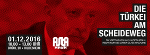 Diesen Donnerstag kommt Alp Kayserilioğlu, Redakteur des Lower Class Magazine von Istanbul nach Hildesheim und wird über die politische Situation in der Türkei berichten.