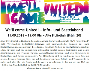 Em bi navê „Antifaschistisches Netzwerk“ li Hildesheim` ê Steingrube cejna yek gûlan bi dîroşma “hevkarî, tekoşîn û femînîzm” pîroz dikin. Bang a me ji hemu kesên pêşverû re ku yekê gûlanê seat li 11:00 an li istesyon a trênê di meşa me a bloka internasyonalist de cihe xwe bigirin û li kolan an bang u daxwazîyen xwe bi gîrin. Dawî ya meşê li Steingrube şahî ya me despê dike. Di şahî yê de ji gelek çandên navnetewî komên muzîk´ ê, stand ên xebat a kedkaran û ên înformasyonan hene. Herwiha kurte semînar u cur be cur xwarin ên gelêrî wê di xizmeta we de bin. Bê goman zarok jî ne hatine ji bîrkirin, gelek platformên lîstik an wê ji zarokan re xizmet bike. Hûn dikarin di rupel a mê a înternetê de agotîyên berfirehtir jî bişopînin. Silav u rêz.