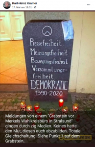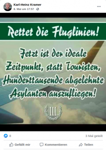 Kramer hat auf seinem facebook-Profil wiederholt Propaganda-Bilder und Inhalte offen neonazistischer Parteien und Organisationen, u.a. von “Der III. Weg” und der “Identitären Bewegung” hochgeladen und geteilt, wie Recherchen der ALM belegen. Hinzu kommt eine Karikatur, welche die Frage stellt, ob man Bundeskanzlerin Merkel lieber “aufhängen oder an die Wand stellen” sollte.