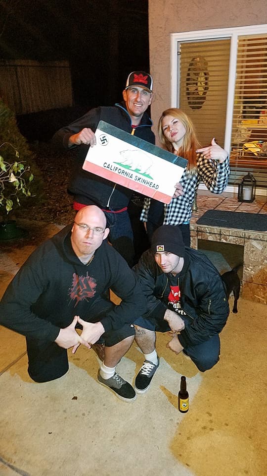 Nicole and Joshua have been affiliated with Sacramento white supremacists since the fall of 2015, possibly earlier. In the image below, a bearded Joshua Wallace stands behind Nicole Wallace who are both to Jason Judd’s right. Judd refers to them as his crew mates and uses the hash tag #hailcas, which stands for Hail California Skinheads. Interestingly enough, the term skinhead was stolen from anti-racist skins back in the early 1980s who still proudly call themselves skins with the anti-racist preface of course.