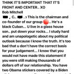 In this post, Mitchell champions the chairman of the Proud Boys, Enrique Tarrio. Tarrio is based in Florida and has a history of encouraging fellow Proud Boys to commit acts of violence and intimidation. For example, less than a month before election day, far-right factions including the Proud Boys began an effort to intimidate and harass Biden supporters in the hopes of giving the Trump campaign an edge. Tarrio was caught on camera as part of a contingent that encircled a caravan of Biden supporters. In this picture he can be seen walking towards cars of Biden supporters with a Proud Boys shirt on. Though our group opposes both the Democratic and Republican parties, we feel it is important to highlight just what the Proud Boys are capable of.