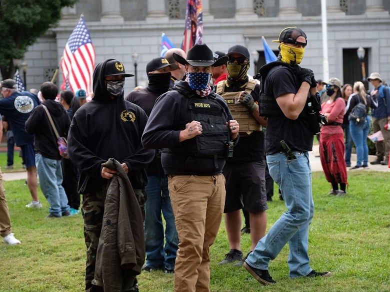 Proud Boys and other “Stop the Steal” rally-goers terrorizing Cesar Chavez park on 11/21