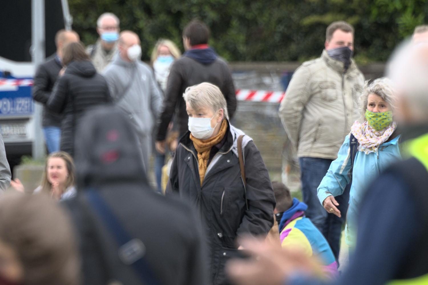 Auch er ist eine der Personen, die ohne jede Mund-Nasen-Bedeckung an der Veranstaltung teilnahmen.