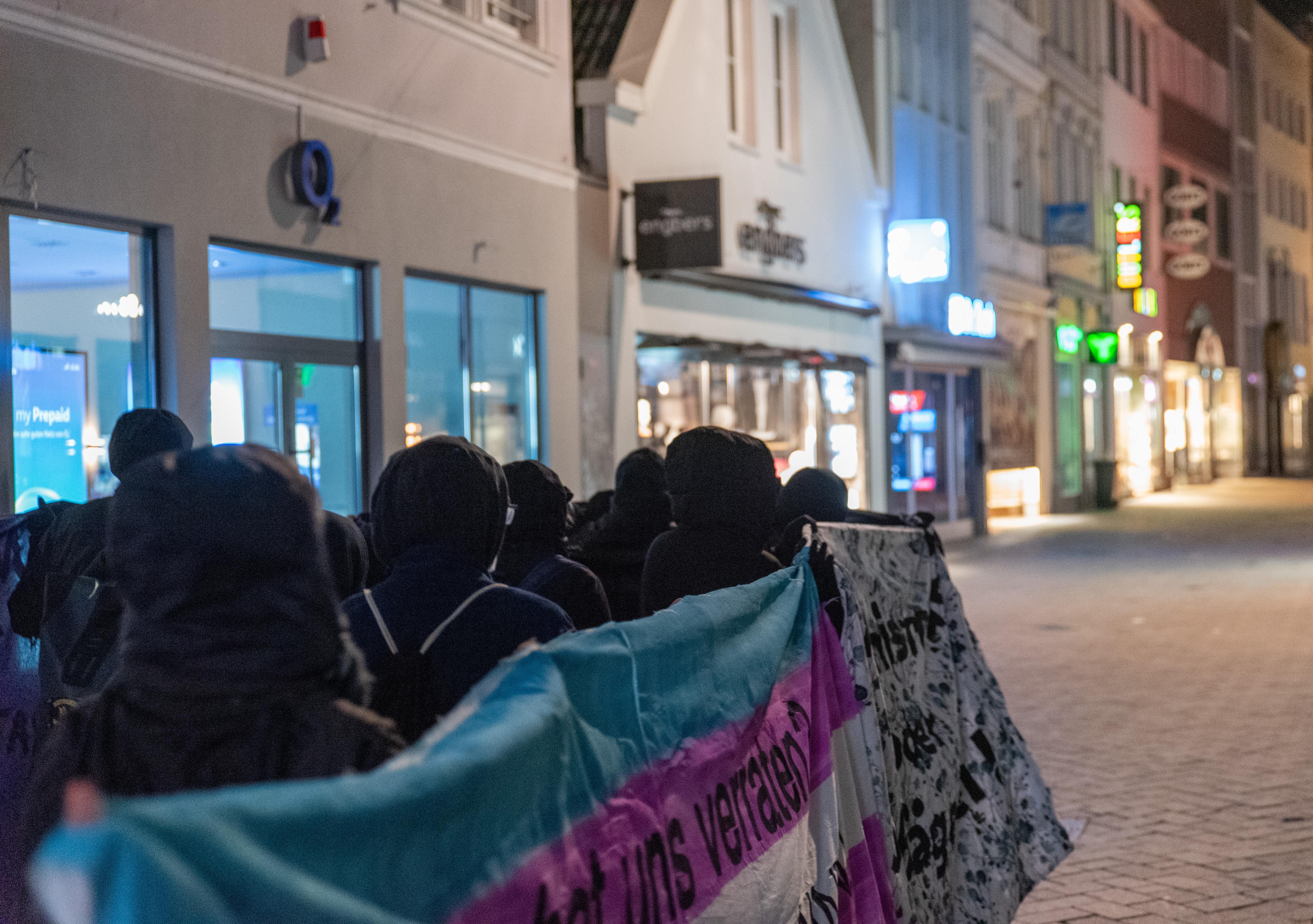 Anschlieszend kam es durch die Initiative einer anderen queerfeministischen Gruppe zu einer kraftvollen, lauten Sponti mit ca. 100 Menschen durch die Innenstadt um Mackern ein für alle Mal zu zeigen das wir uns die Strasze zurück holen und ihr Scheiszverhalten nicht länger toleriert wird!