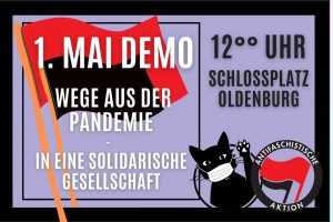 Wir tollerieren antisemitische Aufmärsche nicht – in Oldenburg und überall! Deshalb rufen wir dazu auf, am 27.03.21 um 13:30 Uhr auf dem Schlossplatz und entlang der Demo den Antisemit*innen entgegenzutreten und ihnen klarzumachen: Verpisst euch von der Straße!