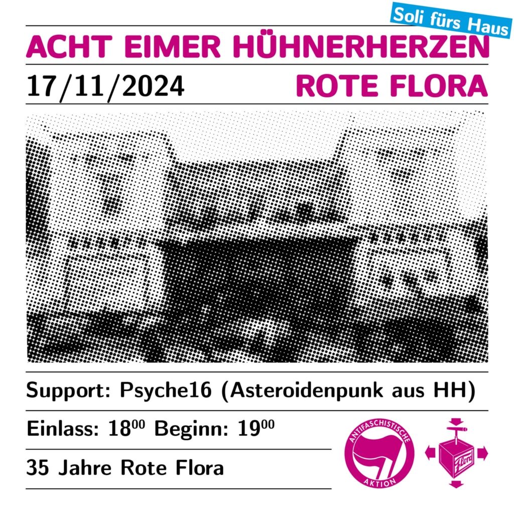 In dem von uns im November 2013 (!) mitinitiierten Aufruf „Antifa supports Rote Flora“ mit vielen unterzeichnenden Antifa-Gruppen, schrieben wir damals: „Uns ist klar: Wir brauchen alternative, autonome und linksradikale Projekte überall. Antifaschistische, linke Kultur und Organisation muss sichtbar bleiben! Die Rote Flora wurde und wird unzählige Male von uns als Ort für Diskussionen & Gegenkultur, für Veranstaltungen, für Partys & Konzerte genutzt. Damit ist klar, dass Angriffe auf die Rote Flora auch Angriffe auf uns und unsere Strukturen sind. Solche Angriffe müssen auf allen Ebenen und mit allen Mitteln beantwortet werden!“ Daran hat sich auch nach über zehn Jahre nichts geändert!