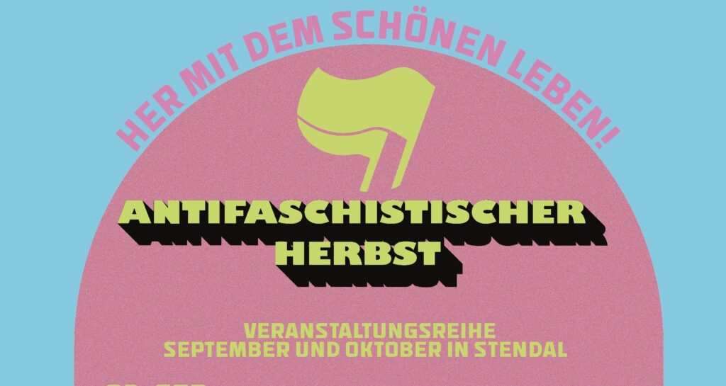 Diesen Herbst organisieren wir zusammen mit dem Antifaschitischen Kollektiv Stendal eine Veranstaltungsreihe und wollen damit linke Themen in die Stadt bringen. Kommt vorbei, informiert euch und lasst uns miteinander ins Gespräch kommen!