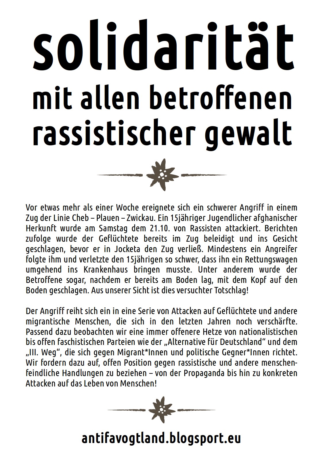 Die Provinz aufwühlen, Antirassismus umsetzen und Solidarität leben.