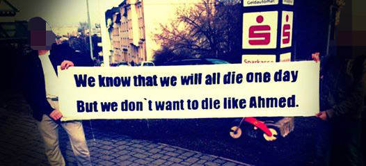 Der Tod Ahmeds war für die Flüchtlinge Anlass gegen die katastrophalen Lebensbedingungen, die unzureichende medizinische Versorgung und die soziale Isolation zu demonstrieren. Bei der Vorbereitung und Logistik wurden sie von verschiedenen antirassistischen Gruppen unterstützt. Vom Heim in der Kasernenstraße ging es quer durch die westlichen Stadtteile Plauens bis zum zentral gelegenen Altmarkt. Die Transparente der Flüchtlinge waren als Botschaften an Anwohner*innen und Passant*innen gerichtet, so war zu lesen: „We are searching for freedom and the peace of mind. That’s why we are here.“ sowie „We know that we will all die one day, but we don´t want to die like Ahmed.“