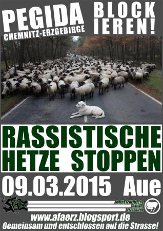 Für Montag den 09. März hat der PEGIDA- Ableger „Pegida Chemnitz-Erzgebirge“ eine Demonstration in Aue angekündigt.