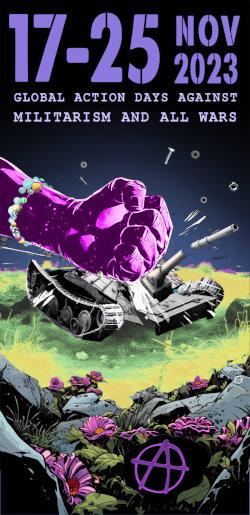 Wir laden Einzelpersonen, Gruppen, Kollektive, Netzwerke und Organisationen, die eine antimilitaristische und internationalistische Perspektive des Widerstands gegen jeden Krieg und Militarismus teilen, dazu ein, vom 17. bis 25. November 2023 Aktionen zu organisieren. Jede Person kann diesen Aufruf unterstützen und weiterverbreiten und diejenigen Initiativen organisieren, die sie für ihre jeweiligen lokalen Gegebenheiten für angemessen erachtet. Auch kleine Aktionen sind herzlich willkommen.