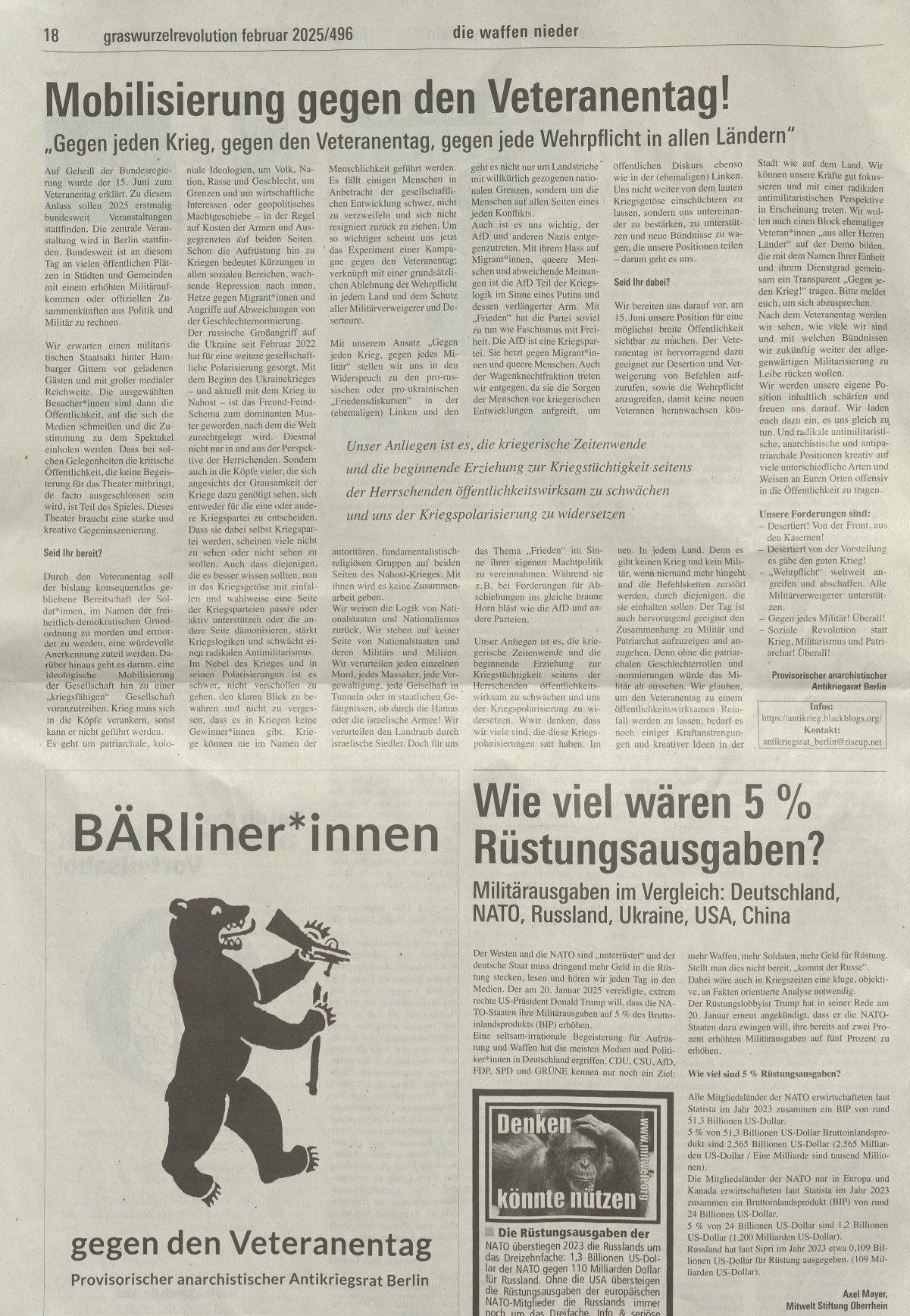 Die Veranstaltung findet im Rahmen der Mobilisierung gegen den Veteranentag im Juni 2025 in Berlin statt.