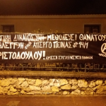 Τη Δευτέρα 11/2 κρεμάσαμε πανό και γράψαμε συνθήματα αλληλεγγύης στον απεργό πείνας απο 14/1, Σπ. Χριστοδούλου. Ο Σπ. Χριστοδούλου, στις 14/1, ξεκινάει απεργία πείνας στις φυλακές της Λάρισας διεκδικώντας τη συγχώνευση των ποινών του. Περισσότερο από ένα μήνα μετά, οι … Continue reading