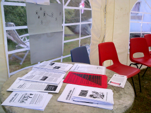 Der „Park der Menschenrechte“ vor dem Hildegardis-Krankenhaus in Köln-Lindenthal war daher ein geeigneter Ort für eine kleine Installation unter dem Motto: „Gedenkt der Toten, aber kämpft für die Lebenden!“ Da das Jahr 2020 hauptsächlich im Zeichen der Covid19-Pandemie steht, fand auch an der Kölner Universitätsklinik vor dem Infektionsschutzzentrum, in dem die Bevölkerung auf das SARS2-Virus getestet wird, eine Protestaktion statt.