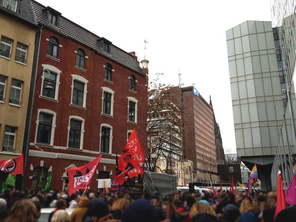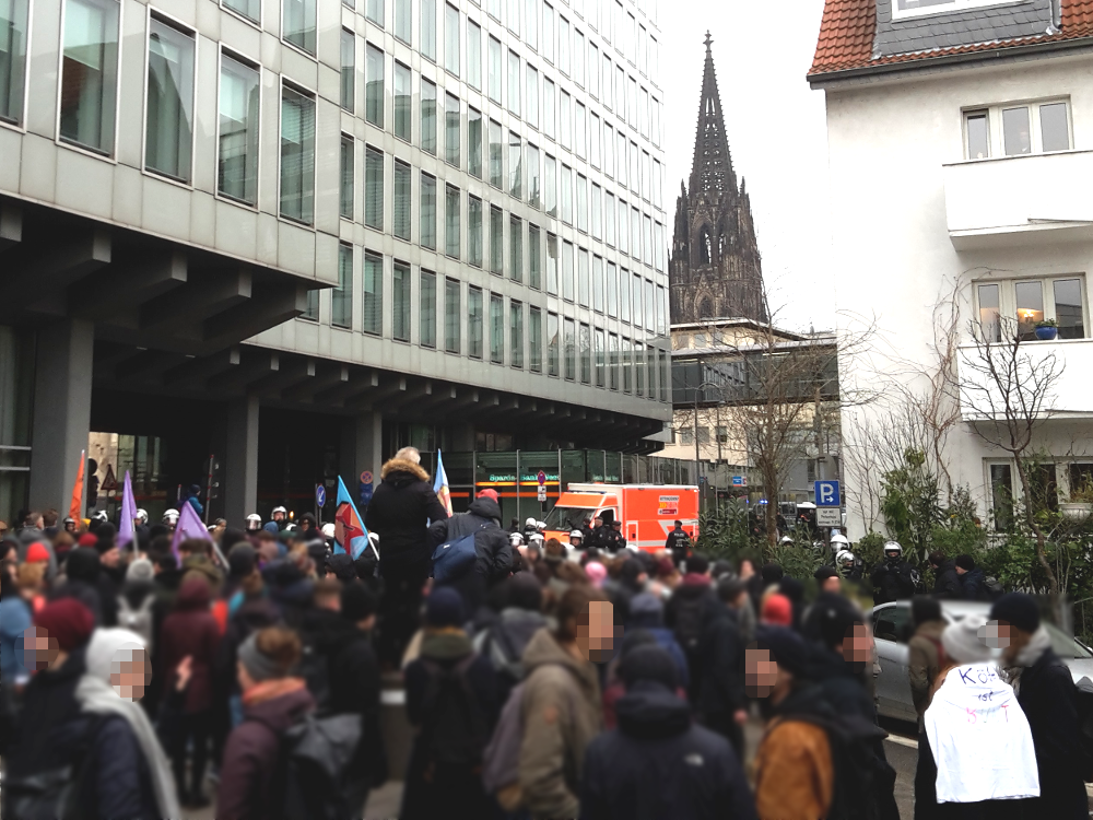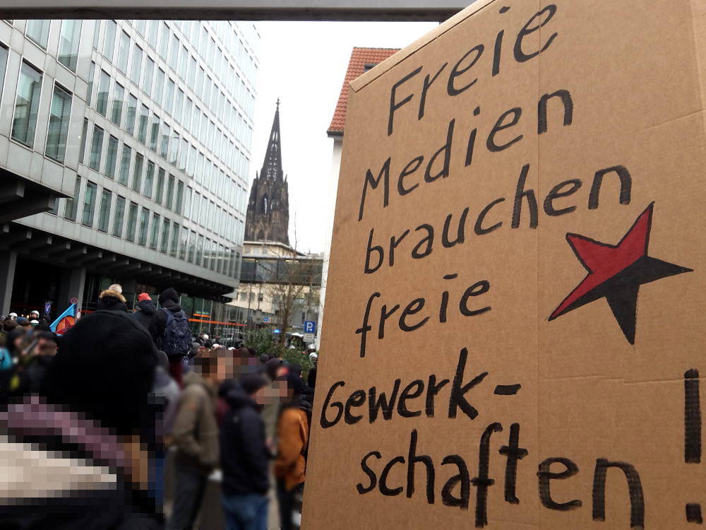 Mehr als 1.000 Demonstrant*innen haben am 02.01.2020 rund um das Gebäude des Westdeutschen Rundfunks an antifaschistischen Kundgebungen teilgenommen. Anlass war eine Versammlung von etwa 40 Rechten, zu der neben Nazi-Hooligans auch die AfD aufgerufen hatte, um grundsätzlich gegen den öffentlich-rechtlichen Rundfunk und sein teilweise kritisch-investigatives Programm zu protestieren.