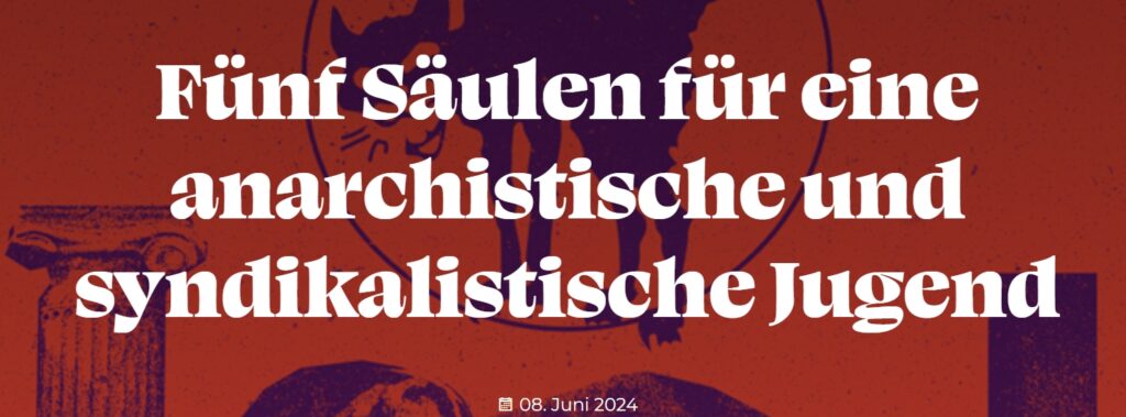 Auf www.anarchismus.de gibt es einen neuen Text zu den fünf Säulen zu einer anarchistischen und syndikalistischen Jugend, geschrieben von Marian von https://linktr.ee/uebertage