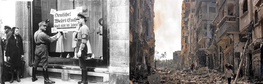 Boykott jüdischer Geschäfte 1. April 1933 und Flüchtlingscamp Jabalia in Gaza nach dem Raketenangriff 10.Oktober 2023