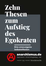 Die Anarchismus.de Broschürenreihe Nr. 5 ist raus: Zehn Thesen zur Ausbreitung des Egokraten. Diesmal herausgegeben vom Zwanglosen und ungezwungenen Netzwerk für die Verhohnpiepelung des „Anarchismus“ der Organisationskadaver.